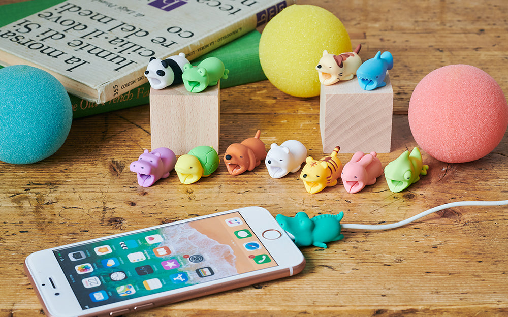 CABLE BITE animals attach to your charging cable and appear to be biting onto your smartphone.